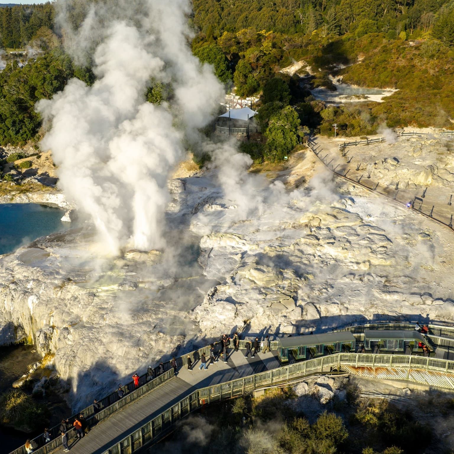 Te Rā导览体验包括90分钟的徒步游览地热山谷,您将参观普胡图间歇泉、奇异鸟保护园及新西兰毛利工艺艺术学院。
